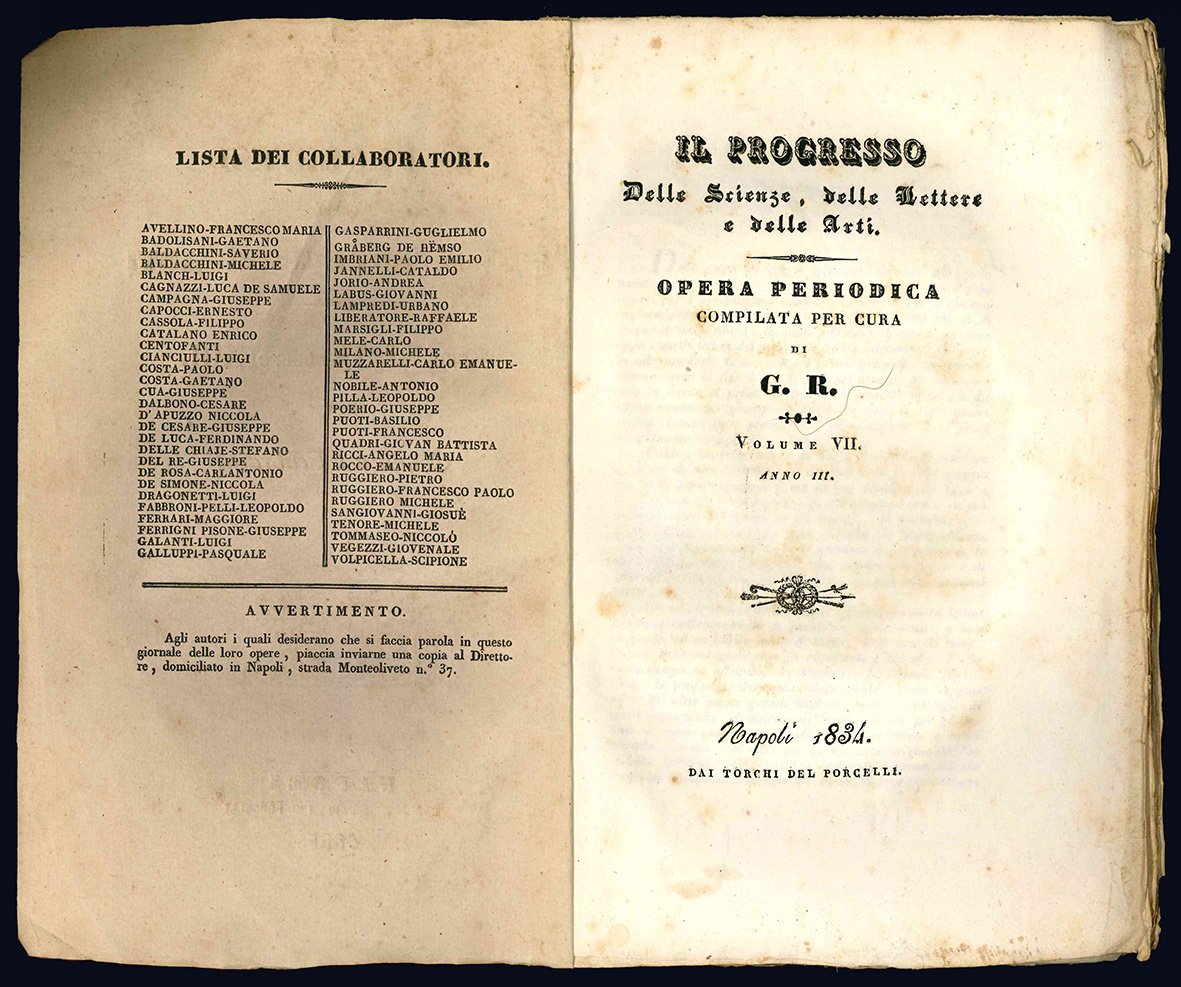 Il progresso delle scienze, delle lettere ed arti. Opera periodica compilata per cura di G. R. Volume VII anno III.