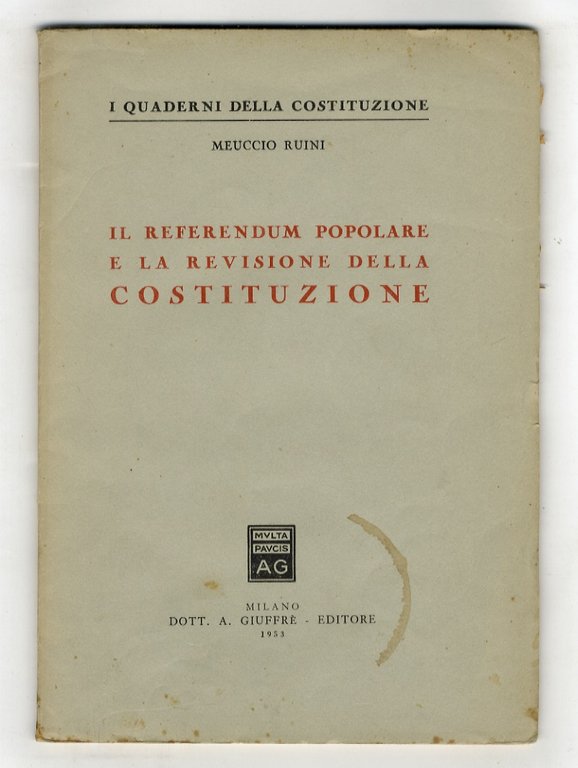 Milano, Giuffrè, 1953, in-8, brossura editoriale, pp. 77. Da "I Quaderni della Costituzione". Piccolo alone semicircolare sulla copertina anteriore, poche sottolineature a penna.