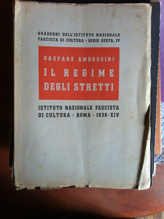 IL REGIME DEGLI STRETTIDi Gaspare AmbrosiniIstituto Nazionale Fascista di cultura / Roma / 1936-XIV76 pagine Formato 16,5x22,5 cmBuone condizioni salvo alcune sottolineature a penna, bordi coperina leggermente danneggiati (gr. 132)E7270