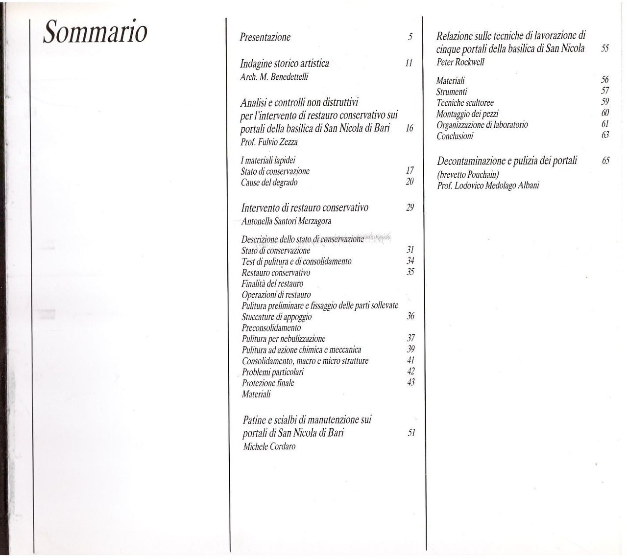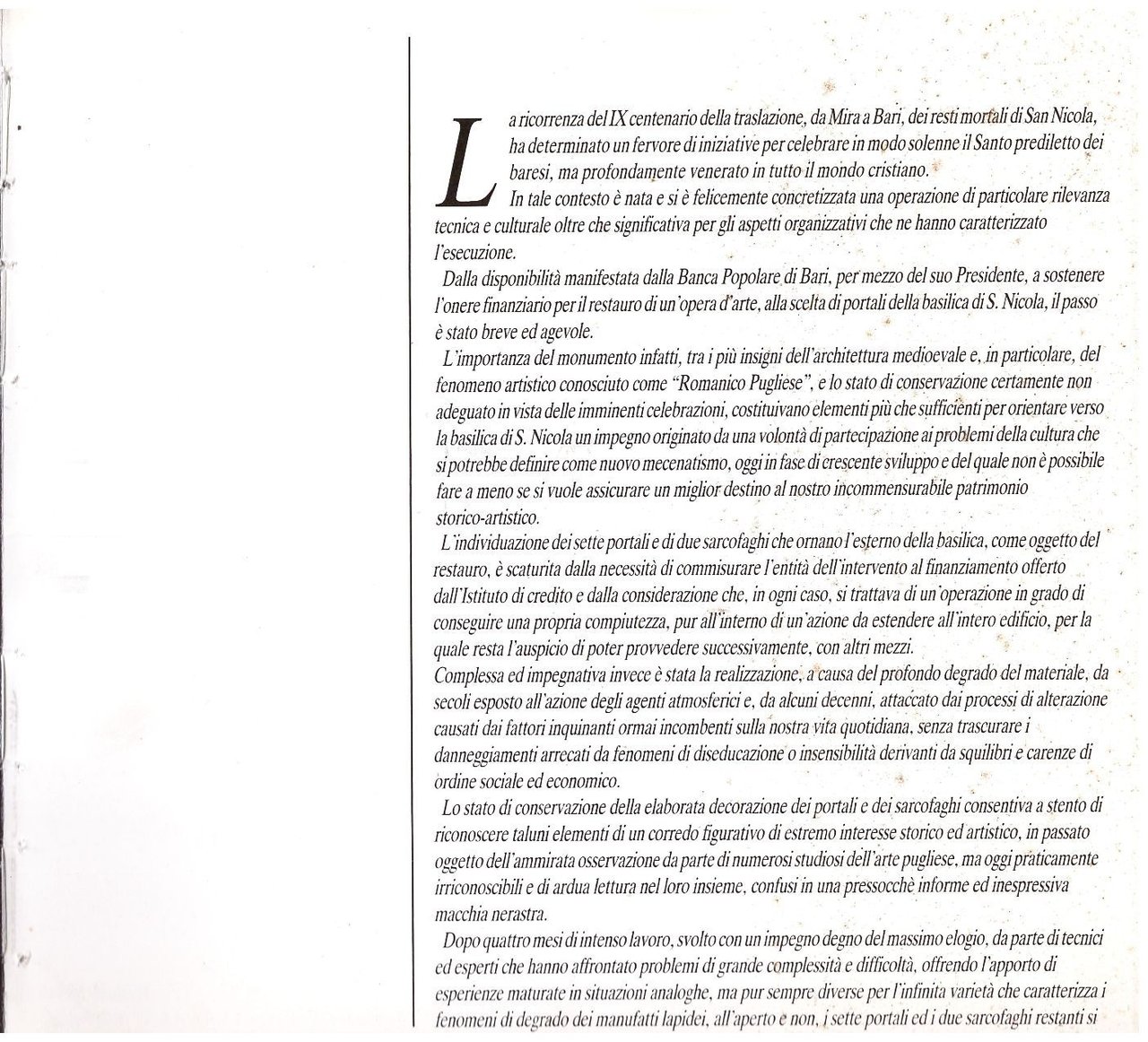 IL RESTAURO DEI PORTALI DELLA BASILICA DI SAN NICOLA DI BARI 1986 Pouchain Libro