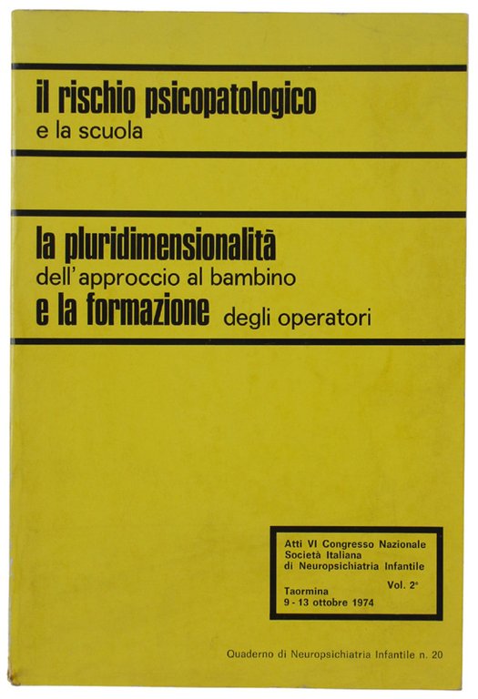 IL RISCHIO PSICOPATOLOGICO E LA SCUOLA + LA PRURIDIMENSIONALITA' DELL'APPROCCIO AL BAMBINO. Atti VI Congresso Nazionale SocIetà Italiana di Neuropsichiatria Infantile. Taormina 9-13 ottobre 1974 - Vol. 2°
