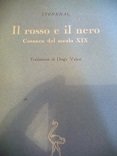PRIMA EDIZIONE Einaudi con traduzione di Diego Valeri. Serie Narratori stranieri tradotti.  Il rosso e il nero. Cronaca del 1830 (titolo originale, Le Rouge et le Noir, con due sottotitoli: Chronique du XIXe siècle e Chronique de 1830) è un romanzo storico dello scrittore francese Stendhal. Il protagonista, Julien Sorel, è un giovane uomo della provincia francese di modesta educazione, il quale tenta di salire la scala sociale attraverso una combinazione di talento, duro lavoro, inganno e ipocrisia. Ma permettendo alle passioni di travolgerlo, saranno queste a perderlo. Il sottotitolo del romanzo allude al duplice intento letterario di rappresentare sia un ritratto psicologico del romantico protagonista sia una satira analitica, sociologica dell'ordine sociale della Francia sotto il regime della Restaurazione Borbonica. In brossura. Pp. 497. Ottime condizioni.