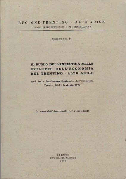 Il ruolo dell'industria nello sviluppo dell'economia del Trentino Alto Adige, atti della conferenza regionale dell'industria, Trento 20-21 febbraio 1970.