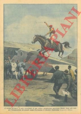 Il salto eccezionale di una celebre cavallerizza americana alle feste per l'inaugurazione del grande campo di aviazione di Glendale.