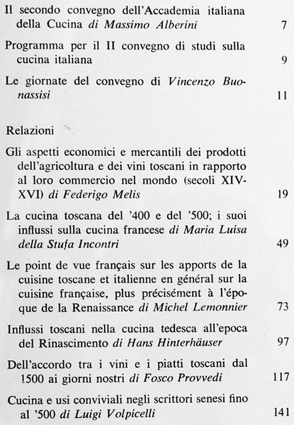 (Codice GA/1743) In 8° 171 pp. La cucina toscana antica e moderna. Atti del Convegno, vari studi: vedi foto dell'indice. Con 8 tavole fuori testo. Brossura originale, ottimo stato. ~~~ SPEDIZIONE IN ITALIA SEMPRE TRACCIATA