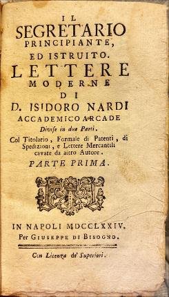 Il segretario principiante ed istruito. Lettere moderne di D. Isidoro Nardi accademico arcade. Parte prima e Parte seconda.