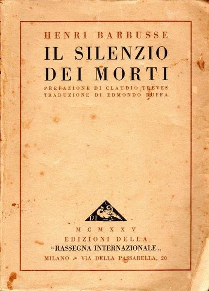 Il silenzio dei morti, edizione 1925, pp. 252, formato 14 x 19.<BR>Copertina morbida di colore beige con titoli in nero e marrone al piatto anteriore e sul dorso. Prefazione di Claudio Treves. Traduzione di Edmondo Buffa. <BR>Imperfezioni dovute al tempo. Condizioni accettabili.