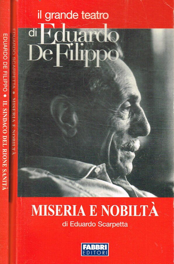 Due volumi della collana del Grande Teatro di Eduardo de Filippo, Miseria e Nobiltà di E.Scarpetta ed a cura di Siro Ferrone, brossure editoriali illustrate, leggermente scolorite e con lievi segni di usura ai bordi, all'interno le pagine sono ingiallite attorno ai testi. Numero pagine 176