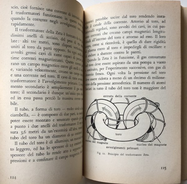 Soggetti: Energia nucleare, Uranio, Idrogeno, Atomo, Atomica, Deuterio, Inghilterra, Stati Uniti, Unione Sovietica, Armamenti, Anni Sessanta, Guerra Fredda, Macchina di Harwell, Ginevra, Convenzione, Anni Cinquanta, Fissione, Scienza, Fisica, Magnetismo, Luce, Radiazioni, Nucleo, Protoni, Neutroni, Radioattività, Bomba H, Fusione, Termonucleare, Calore, Elio, Litio, Reattori, Onde, Particelle, Sole, Stelle, Materia, Gas, Stabilità, Conversione, Plasma, Macchine, Stellarator, Iniezioni di ioni, Scienziati, Bottiglie, DCX, Ogra, Onde, Fonti energetiche, Futuro, Libri Vintage, Fusion power, Electricity, Atoms and Nuclei, Balance, Zero Energy Thermonuclear Assembly, Nuclear research reactors