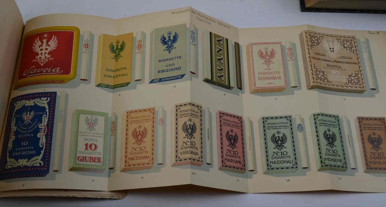 Cm. 23,5, pp. 398. Con moltissime illustrazioni nel testo e le quattro belle tavole più volte ripiegate f.t. in cromolitografia in fine. Brossura editoriale illustrata a colori. Esemplare genuino e ben conservato. Bella e vasta monografia sul tabacco.