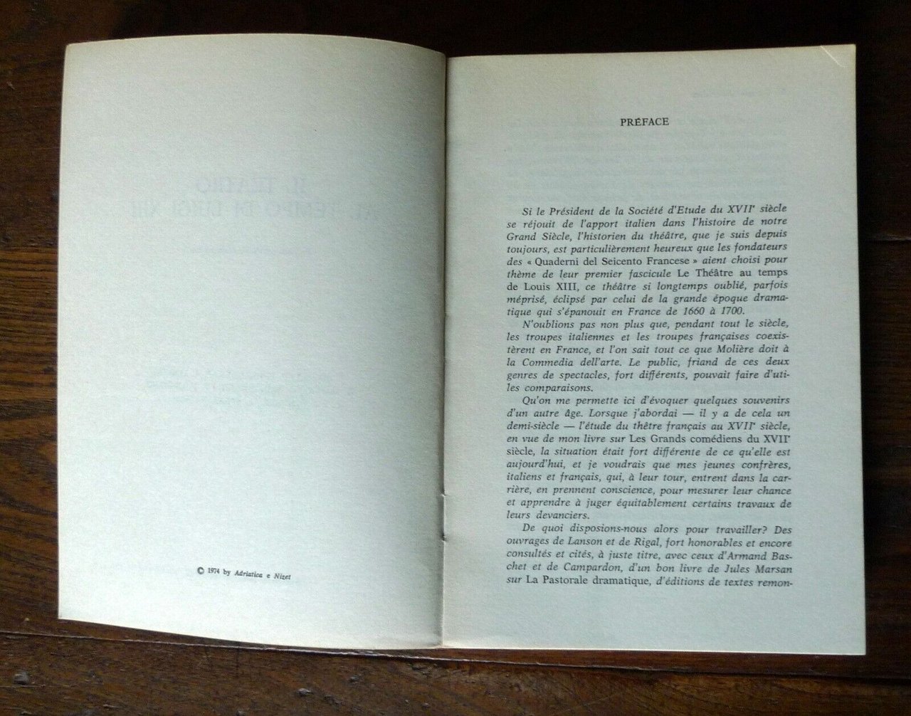 IL TEATRO AL TEMPO DI LUIGI XIII,1974 Adriatica/Nizet[QUADERNI DEL '600 FRANCESE