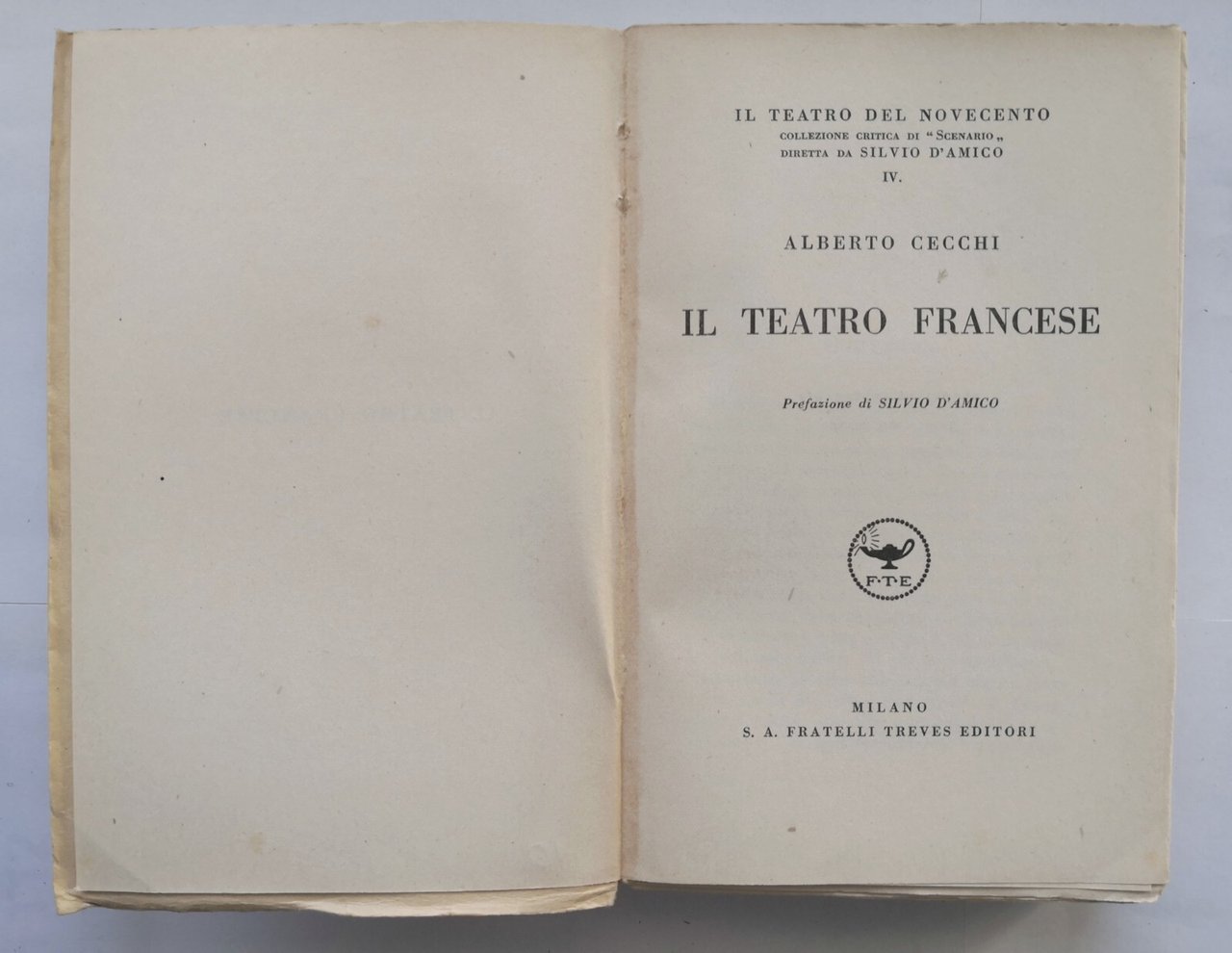 IL TEATRO FRANCESE di Alberto Cecchi 1935 Treves libro novecento D'Amico