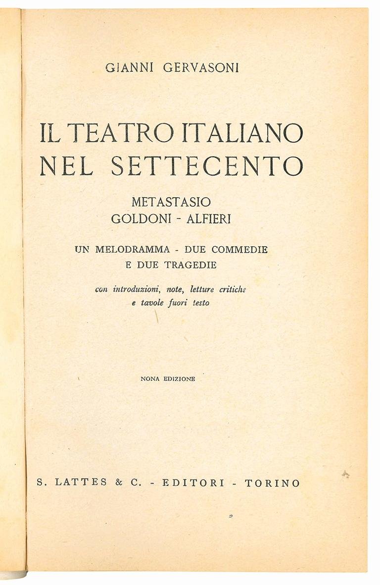 Il teatro italiano nel Settecento. Metastasio - Goldoni - Alfieri. Un melodramma - Due commedie e due tragedie con introduzioni, note, letture critiche e tavole fuori testo. Nona edizione.