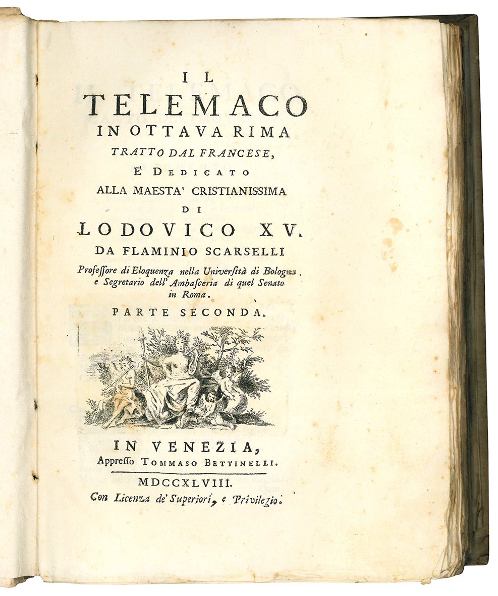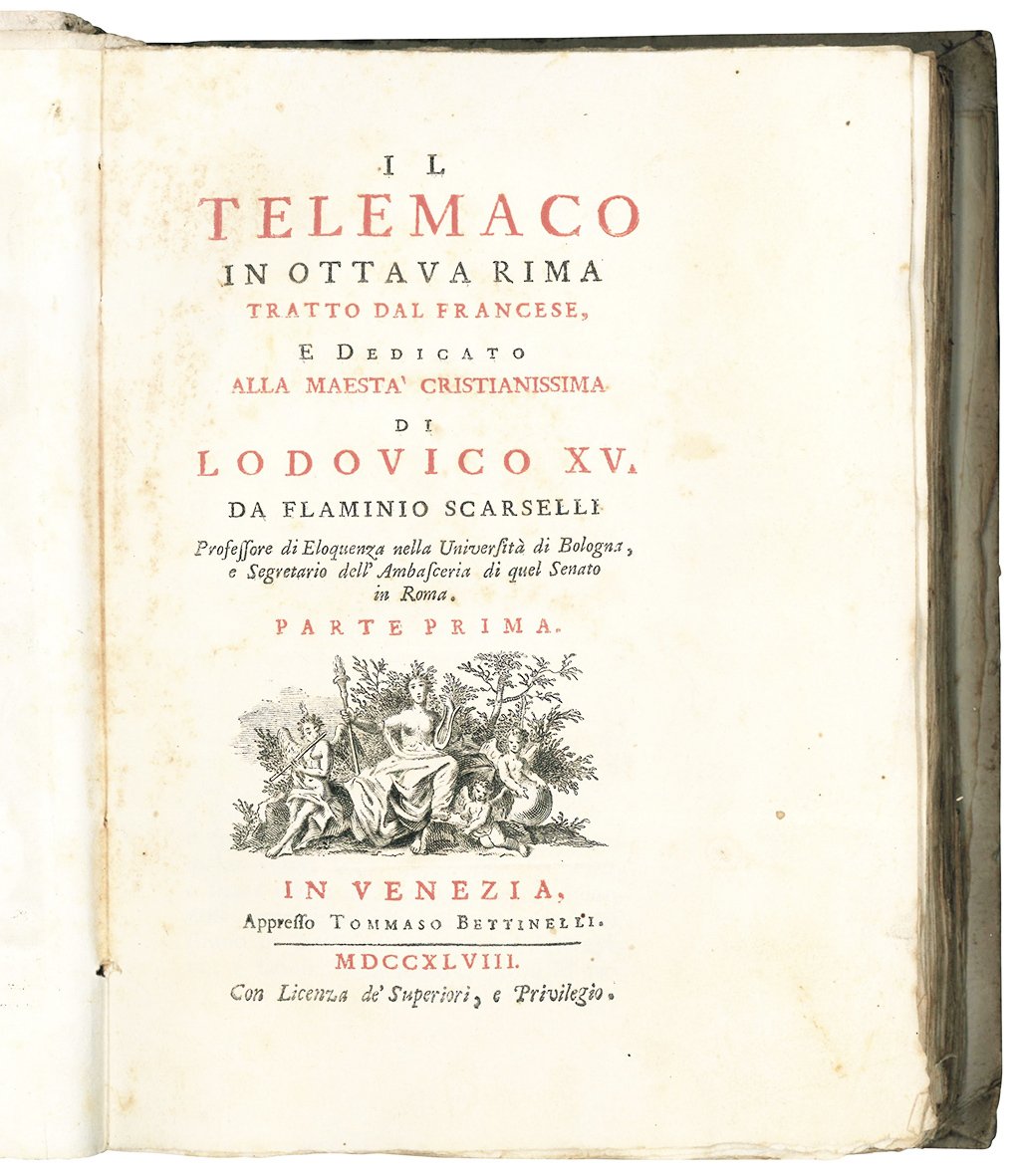 Il Telemaco in ottava rima tratto dal francese, e dedicato alla maestà cristianissima di Lodovico XV. da Flaminio Scarselli [...] Parte prima [-seconda]