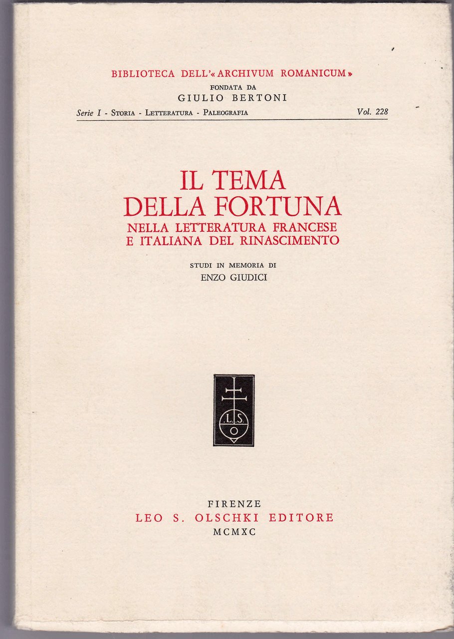 Il tema della fortuna nella letteratura francese e italiana del Rinascimento. Studi e memorie di Enzo Giudici.