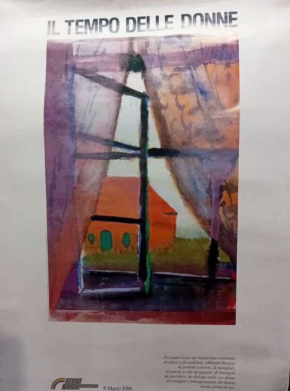 Manifesto di cm. 98x67 raffigurante a colori un dipinto di P. Klee. In basso a destra un brano tratto da Segreti silenzi e bugie - Adrienne Rich, a sinistra la sigla 'Fim-Cisl Milano 1986. (Manifesto edito per la festa della Donna 1986). Marginali tracce d'uso ai margini.