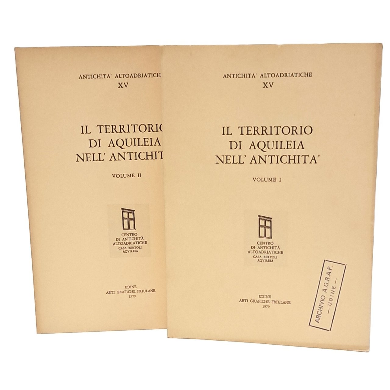 PRIMA EDIZIONE, atti della IX settimana di studi aquileiesi tenutasi dal 22 al 28 aprile 1978; Antichità altoadriatiche volume XV della serie. In due tomi. Raccolta di contributi di vari docenti con cartine fuori testo. Sommario: L'aspetto fisico del territorio di Aquileia, Fabbri, Paolo; Il territorio di Aquileia nei geografi antichi, Grilli, Alberto; Insediamenti preromani nel territorio di Aquileia, Càssola Guida, Paola; Le popolazioni preromane del Friuli nelle fonti letterarie, Càssola, Filippo; Toponomastica preromana e romana nel territorio di Aquileia antica, Frau, Giovanni; Contributo della fotografia aerea alla conoscenza del territorio di Aquileia, Schmiedt, Giulio; Insediamenti romani nel territorio di Aquileia, Zaccaria, Claudio; Aquileia: il sistema viario romano, Grilli, Alberto; Presenze archeologiche romane nell'area meridionale del territorio di Aquileia, Bertacchi, Luisa; Presenze archeologiche romane nell'area nord-occidentale del territorio di Aquileia, Lopreato, Paola; Presenze archeologiche nella zona nordorientale del territorio di Aquileia, Strazzulla, Maria José; Il territorio sudorientale di Aquileia, Maselli Scotti, Franca; Il territorio di Aquileia e l'epigrafia, Panciera, Silvio; Aspetti della circolazione monetaria ad Aquileia e nel suo territorio in età antica, Gorini, Giovanni; Impianti produttivi del territorio aquileiese in età romana, Buchi, Ezio; Presenze militari nel territorio di Aquileia, Pavan, Massimiliano; Le fortificazioni tardoantiche del territorio di Aquileia, Bosio, Luciano; Aspetti amministrativi dei centri urbani del territorio di Aquileia, Rossi, Ruggero Fauro; Rapporti socio-economici fra città e territorio nella prima età imperiale, D'Arms, John H; Rapporti socio-economici fra città e territorio nel mondo tardoantico, Camodeca, Giuseppe; Linee di diffusione del Cristianesimo nel territorio di Aquileia, Cuscito, Giuseppe; Il territorio di Aquileia nell'alto medioevo. Note urbanistiche, Tavano, Sergio; Problematica plebaniale della "pertica" di Aquileia, Mor, Carlo Guido. In brossura. Pp. 687. Buone condizioni.