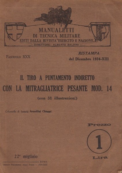 (Collana "Manualetti di Tecnica Militare" a cura della Rivista "Esercito e Nazione" direttore Alberto Baldini. Fascicolo XXX).