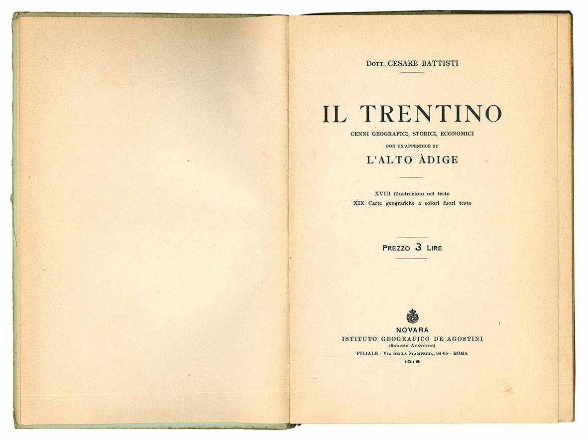 Il Trentino. Cenni geografici, storici, economici. Con un'appendice su l'Alto Adige. XVIII illustrazioni nel testo. XIX carte geografiche a colori fuori testo.