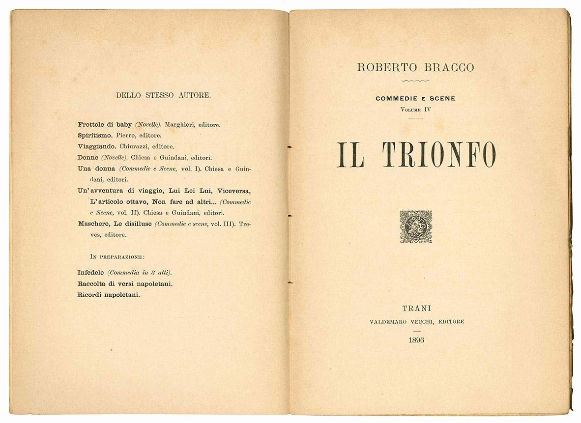 In 8vo (mm 196x134); pp. 118. Carta leggermente ed uniformemente brunita, lievi fioriture. Copertina editoriale con titolo in rosso e nero. Edizione originale abbastanza rara di questo dramma rappresentato per la prima volta in Italia al Teatro Alfieri di Torino il 10 Gennaio 1896 dalla compagnia drammatica Zacconi-Pilotto.