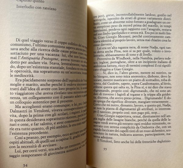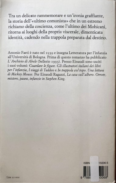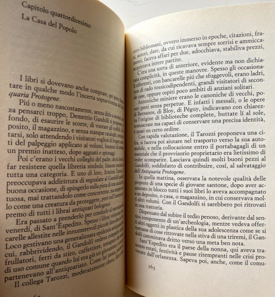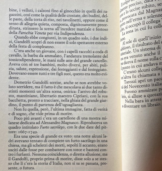 Soggetti: Gialli, Narrativa gialla, Letteratura italiana contemporanea, Romanzi gialli, Noir, Viaggio, Dopoguerra, Fascismo, Comunismo, Ideologie politiche, Cattolici, Comunisti, Demetrio Gandolfi, Resistenza, Sessantotto, Rapagnetta, Casa del popolo, Contraddizioni, Utopia, Nostalgici, Sogno, Uguaglianza, Libertà, Società, Politica, Impegno sociale, Librai, Libri, Consumismo, Merce, Marxismo, Mercificazione, Sognatori, Movimento del Settantasette, Mistero, Thriller, Ironia, Destino, Libri Vintage Fuori catalogo, Lettura, Yellow fiction, Contemporary Italian literature, Mysteries, Travel, Post-war, Fascism, Communism, Political ideologies, Catholics, Communists, Resistance, Sixty-eight, Contradictions, Nostalgic, Dream, Equality, Freedom, Society, Politics, Social commitment, Booksellers, Books, Consumerism, Merchandise, Commodification, Dreamers, The Seventy-Seven Movement, Mystery, Irony, Destiny, Out of print books, Reading, House of the People