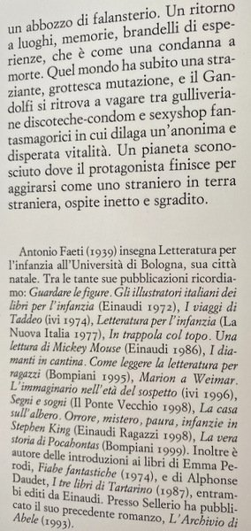 Antonio Faeti, nato a Bologna nel 1939, insegna Storia della letteratura per l'infanzia al dipartimento di Scienze dell'educazione dell'Università di Bologna. Presso Einaudi ha pubblicato: Guardare le figure. Gli illustratori italiani dei libri per l'infanzia (1972 e 2001), I viaggi di Taddeo (1974), In trappola col topo. Una lettura di Mickey Mouse (1986), La casa del popolo (1999) e il romanzo Il ventre del comunista. Inoltre, sono sue le introduzioni ai libri di Emma Perodi, Fiabe fantastiche (1974), di Alphonse Daudet, I tre libri di Tartarino (1987) e a Fiabe balcaniche, tutti editi da Einaudi.