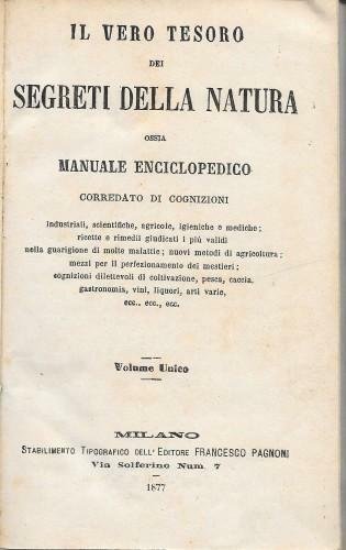 Il vero tesoro dei segreti della natura ossia Manuale enciclopedico corredato di cognizioni.