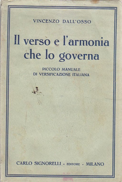 IL VERSO E L'ARMONIA CHE LO GOVERNA di Vincenzo Dall’Osso 1941 Signorelli libro