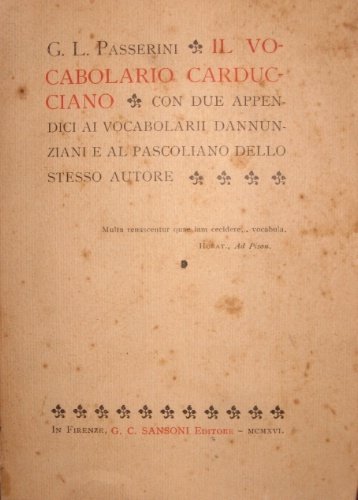 Il vocabolario carducciano. Con due appendici ai vocabolarii dannunziani e al pascoliano dello stesso autore.