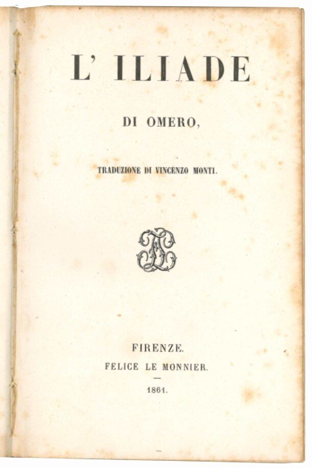 Mm. 175x110. Pp. 526. Carta lievemente brunita, con fioriture. Mezza pelle con titolo inciso in oro al dorso. Lievi abrasioni ai margini dei piatti.