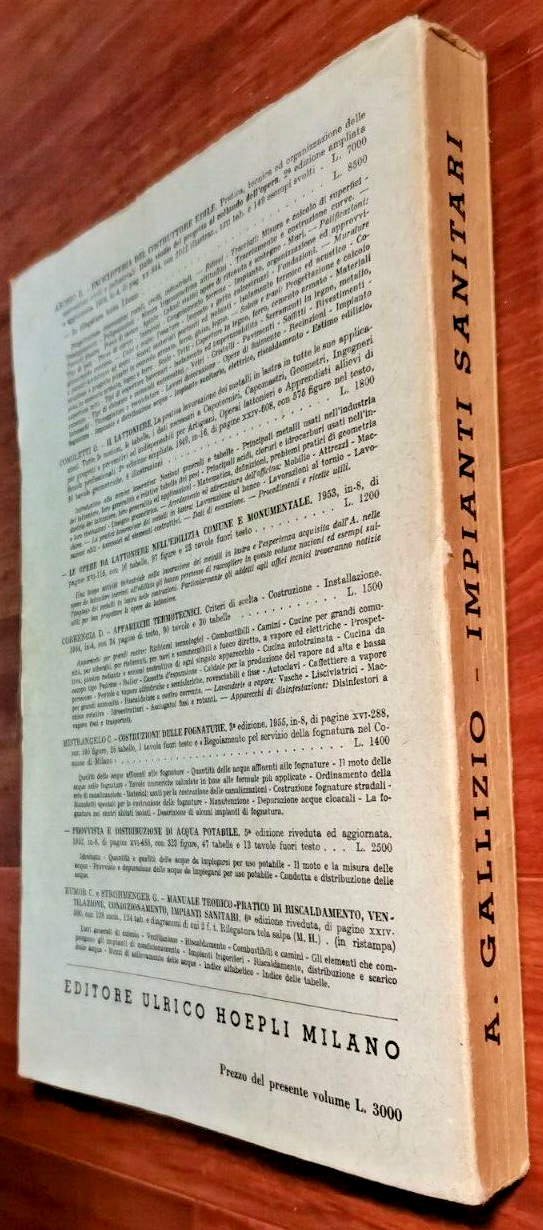 IMPIANTI SANITARI PROGETTAZIONE E TECNICA D'INSTALLAZIONE di Gallizio 1957 Libro