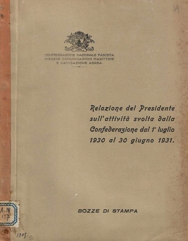 Imprese, comunicazioni marittime e navigazione aerea. - Relazione del Presidente sull'attività svolta dalla Confederazione dal 1 luglio1930 al 30 giugno 1931 (Bozze di stampa).
