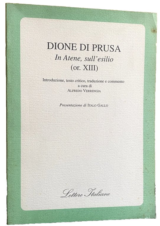 IN ATENE, SULL'ESILIO (OR. XIII). A CURA DI ALFREDO VERRENGIA | Libri antichi e moderni | Dione Di Prusa, Italo Gallo