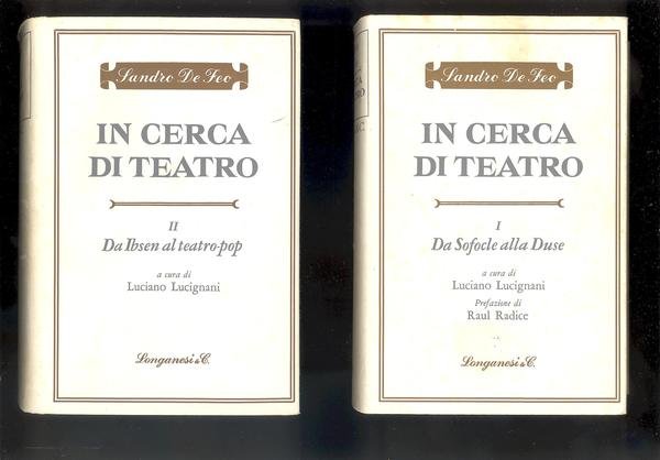 DUE VOLUMI IN 16°.VOLUME I: DA SOFOCLE ALLA DUSE, pp.XXV + 561 + INDICE. VOLUME II:<BR>DA IBSEN AL TEATRO - POP, pp. 920 + INDICE. VOLUMI CON RILEGATURA EDITORIALE <BR>CARTONATA RIGIDA VERDE CON TASSELLO AL DORSO MARRONE E TITOLO IN ORO + <BR>SOVRACOPERTINA CON TITOLO ENTRO CORNICE. A CURA DI LUCIANO LUCIGNANI,<BR>PREFAZIONE DI RAUL RADICE. RACCOLTA DI SCRITTI DI CRITICA TEATRALE COMPILATI <BR>DALL'AUTORE TRA IL 1955 E IL 1968, ATTUATA DA LUCIGNANI E ORDINATA CRONOLOGICAMENTE SECONDO IL DISEGNO TRADIZIONALMENTE SEGUITO DA OGNI MANUALE DI STORIA DEL TEATRO. OPERA FACENTE PARTE DELLA COLLANA I MARMI, <BR>VOLUMI n° 73 - 74. PRIMA EDIZIONE ESAURITA. OTTIMA CONSERVAZIONE, MANTENUTO IL COFANETTO ORIGINALE CARTONATO MUTO. ID 2545