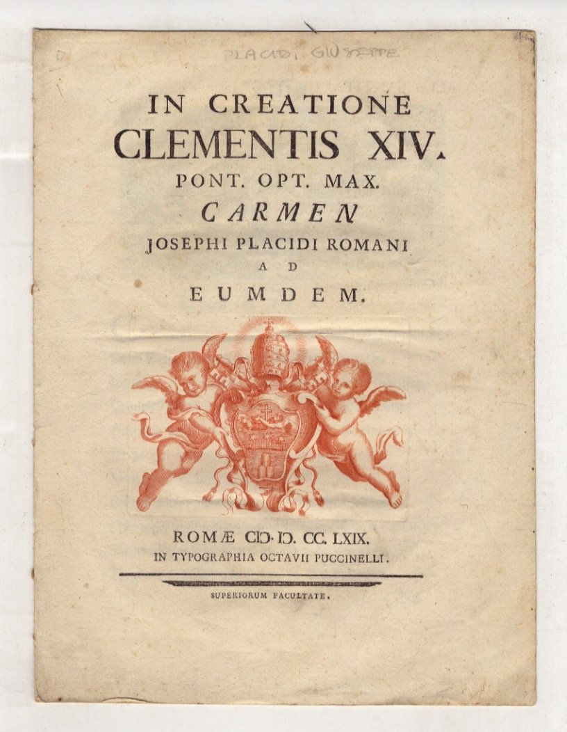 In creatione Clementis XIV Pont. Opt. Max. Carmen Josephi Placidi romani ad eudem.