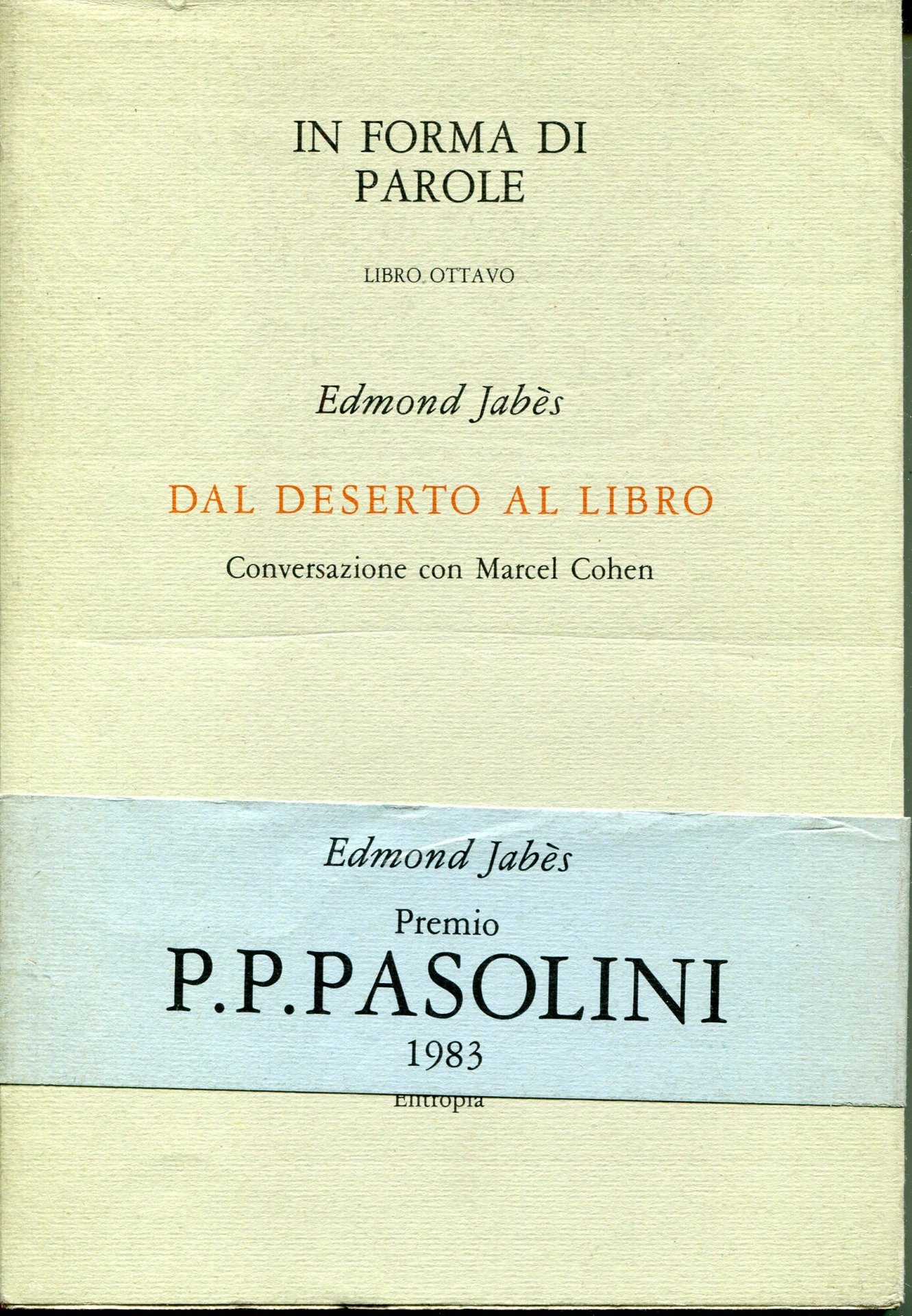In forma di parole 8: Dal deserto al libro : conversazione con Marcel Cohen | Libri antichi e moderni | Edmond Jabes, ,Edmond Jabes