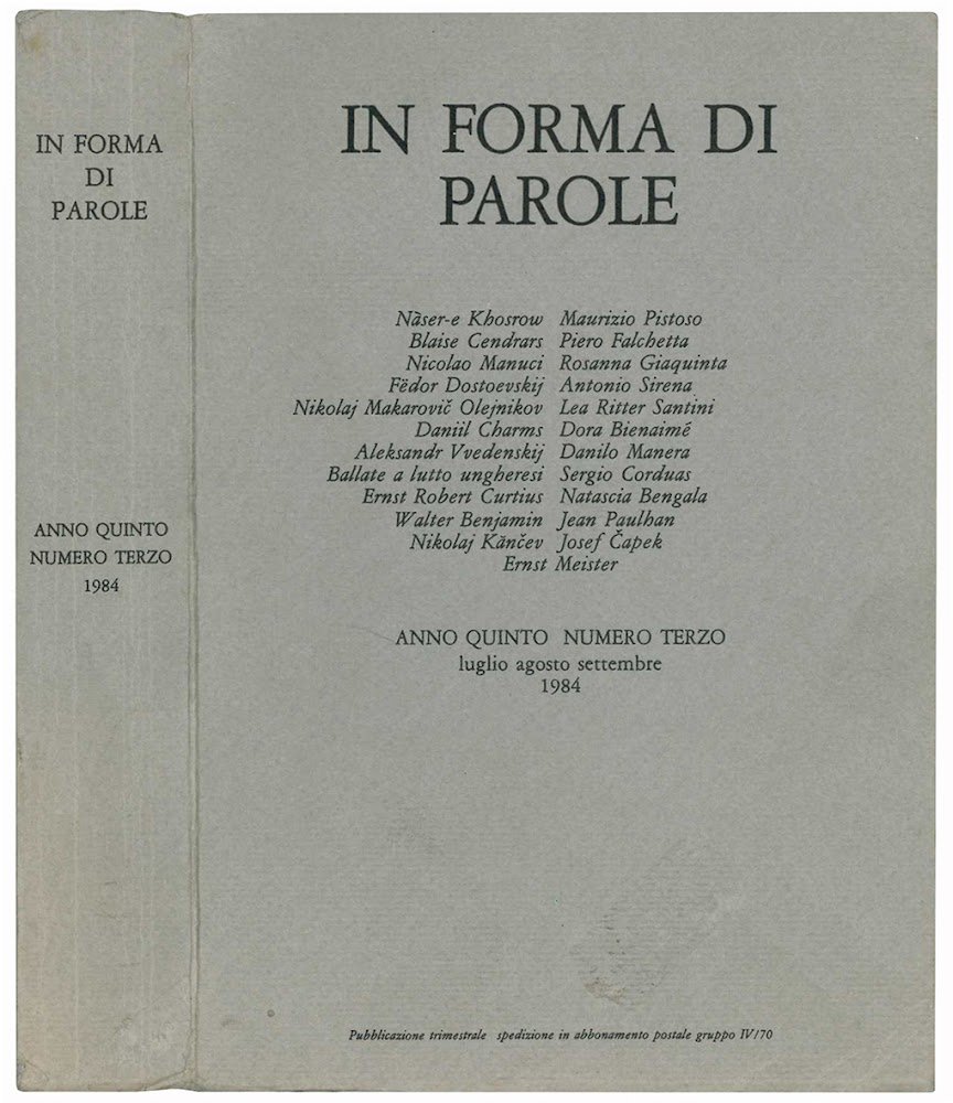 In forma di parole. Anno quinto numero terzo. Luglio Agosto Settembre 1984.