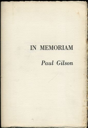 Plaquette In-8°, 8 fogli sciolti piegati a metà (pp. n.n. 32). Pubblicazione fatta in occasione del concerto eseguito il 19 settembre 1963 nel Vecchio Refettorio della Certosa di San Martino a Napoli dal baritono Jean-Jacques Rondeleux accompagnato dal pianista Carlo Bruno in memoria del poeta e scrittore francese Paul Gilson. Fotografia dell'autore in antiporta. Seguono il programma della serata ed i testi di 15 poesie di Gilson.