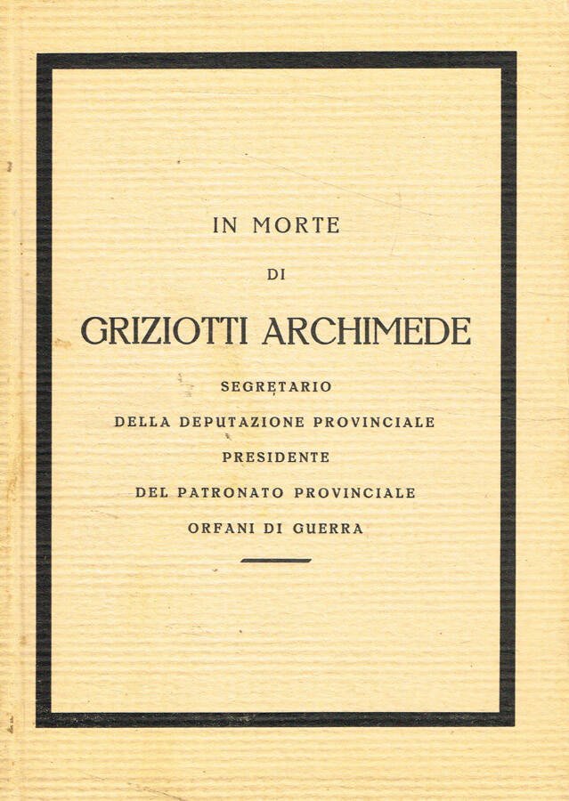 In morte di Griziotti Archimede, segretario della Deputazione Provinciale