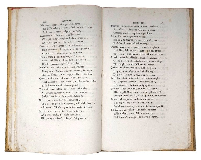 >in-8, pp. (4), 59, legatura in carta decorata, titolo oro lungo il dorso. Le ultime 10 pagine raccolgono 17 sonetti.  Ode antifrancese in terzine pubblicata per la prima volta totalmente anonima nel 1793 a fascicoli che uscirono in periodi differenti, lo stesso anno venne pubblicata la seconda edizione romana e una lombarda. La presente edizione venne probabilmente impressa a Bologna, in quanto simile a quella descritta da Bustico al n. 178.  Buon esemplare, con fioriture sparse.