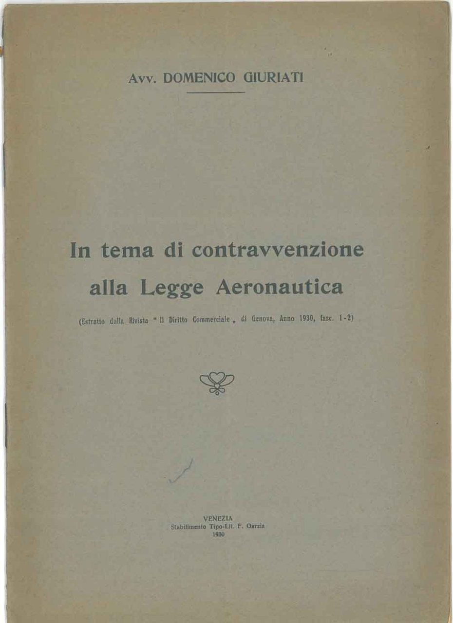 In tema di contravvenzione alla legge aeronautica Estratto dalla rivista "Il diritto commerciale"