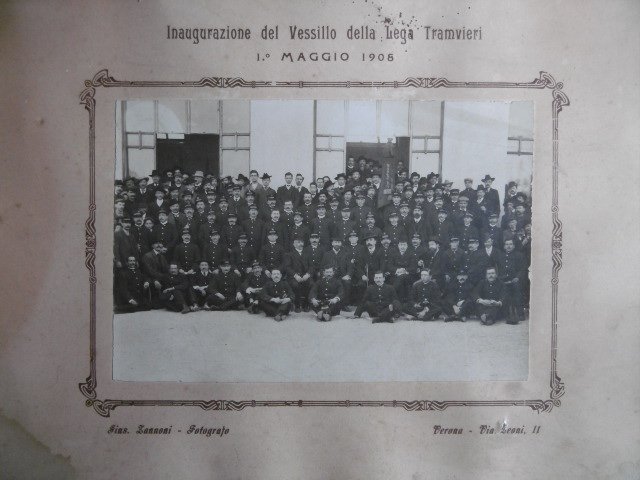 Inaugurazione del Vessillo della Lega Tramvieri di Verona - Fotografia d'epoca originale