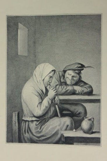 Incisione d'autore '800 da dipinto Suonatrice scena di genere ed Negro Torino