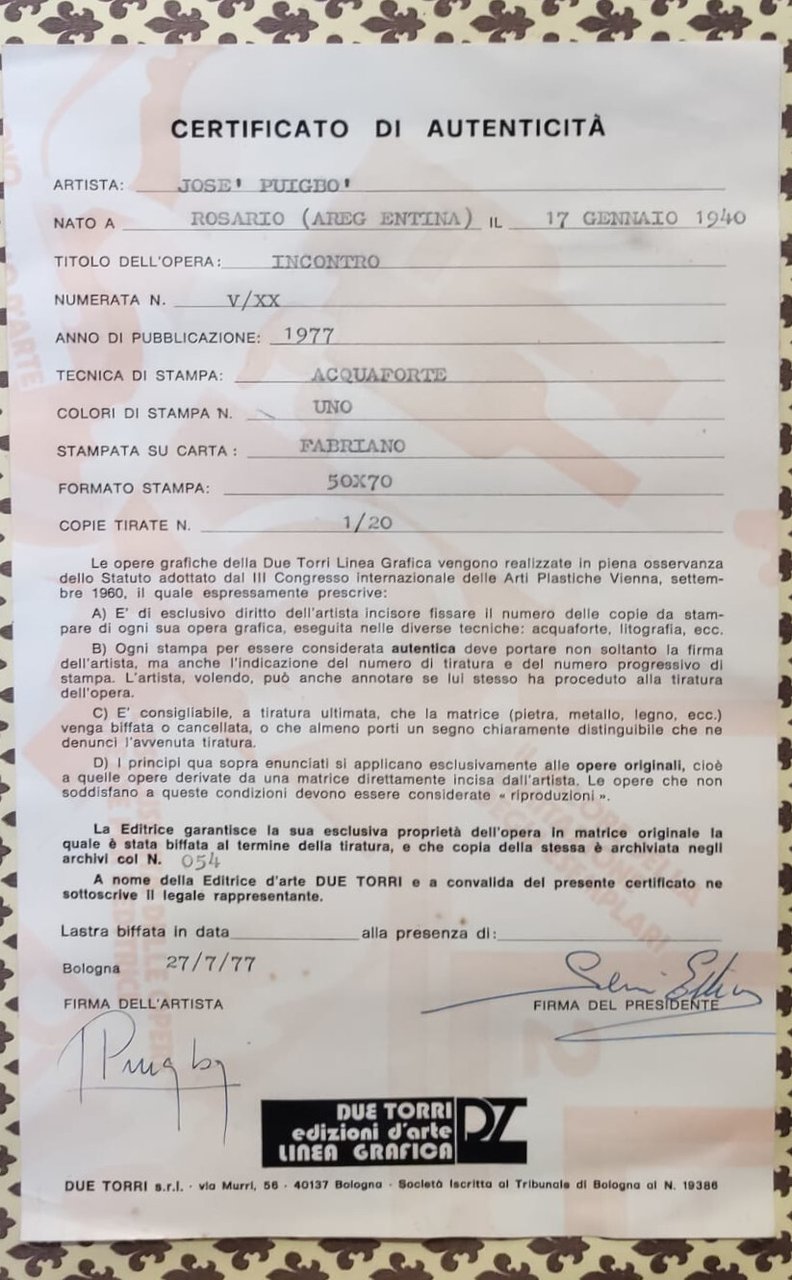 Tiratura V/XX. acquaforte cm. 50 x 70 Buono (Good) Buon es..