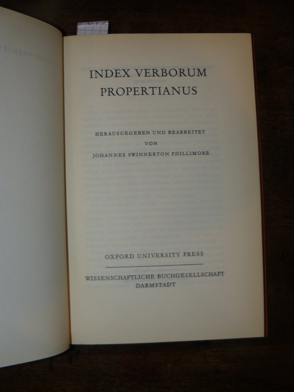 Index verborum Propertianus. Herausgegeben und bearbeitet von Johannes Swinnerton Phillimore
