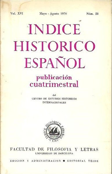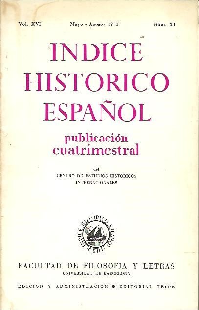 INDICE HISTORICO ESPAÑOL. VOL. XVI. MAYO-AGOSTO 1970. NUM. 58.