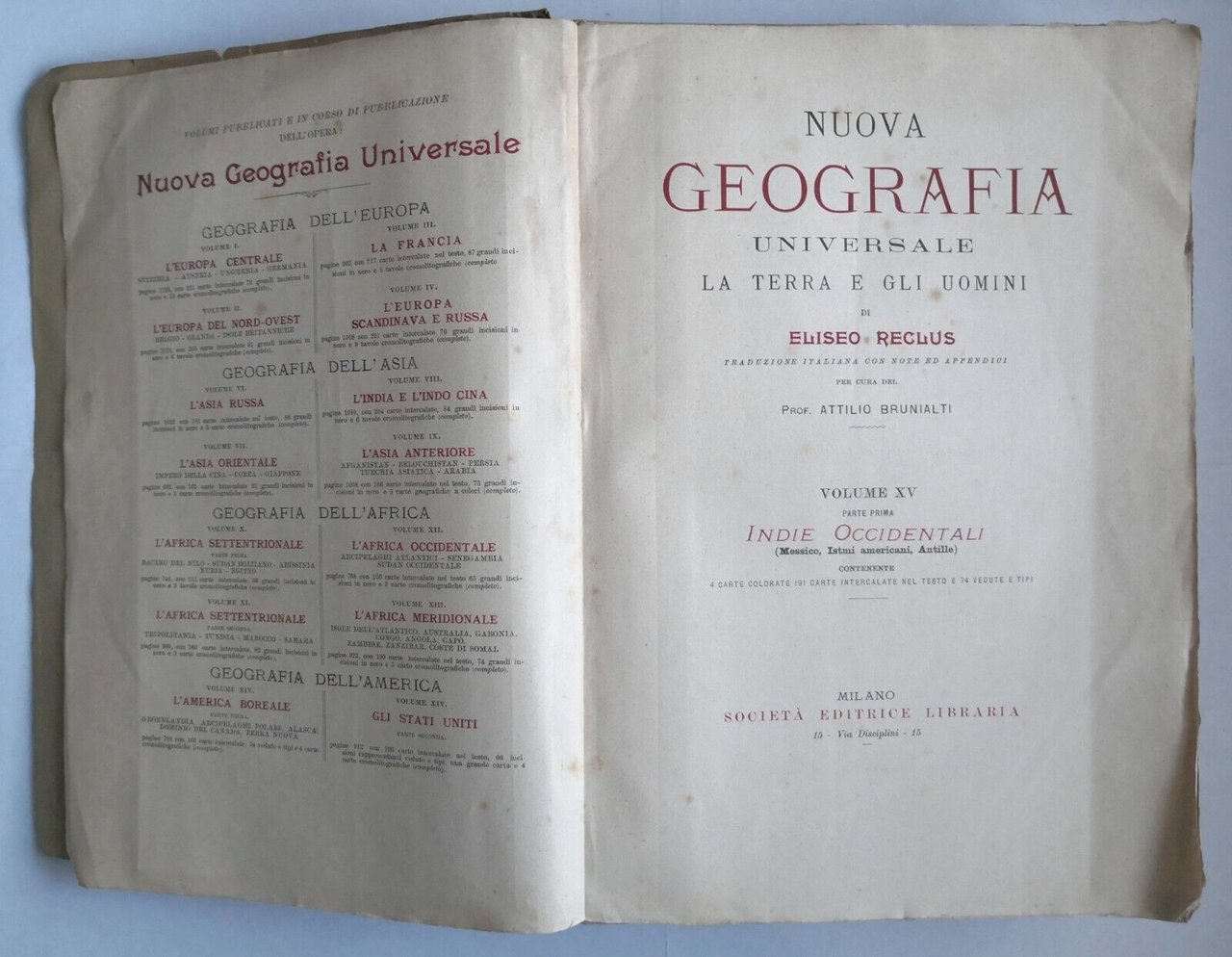 NUOVA GEOGRAFIA UNIVERSALE di Eliseo Reclus a cura di Attilio Brunialti. La terra e gli uomini. Volume XV, parte prima - Indie Occidentali (Messico, Istmi americani, Antille).