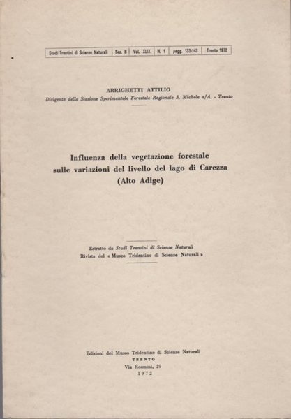 - Estratto originale da: Studi trentini di scienze naturali. Sezione B. - Trento. - V.49 (1972), n.1