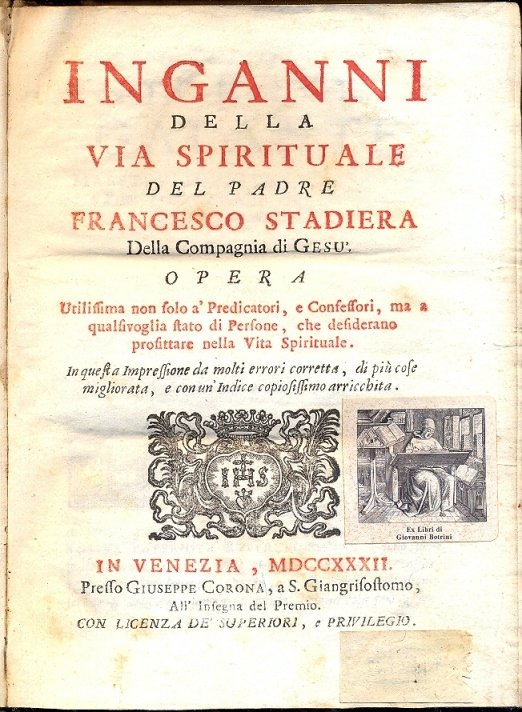 Inganni della via spirituale. Opera utilissima non solo a' Predicatori, e confessori, ma a qualsivoglia stato di Persone, che desiderano profittare nella Vita Spirituale.