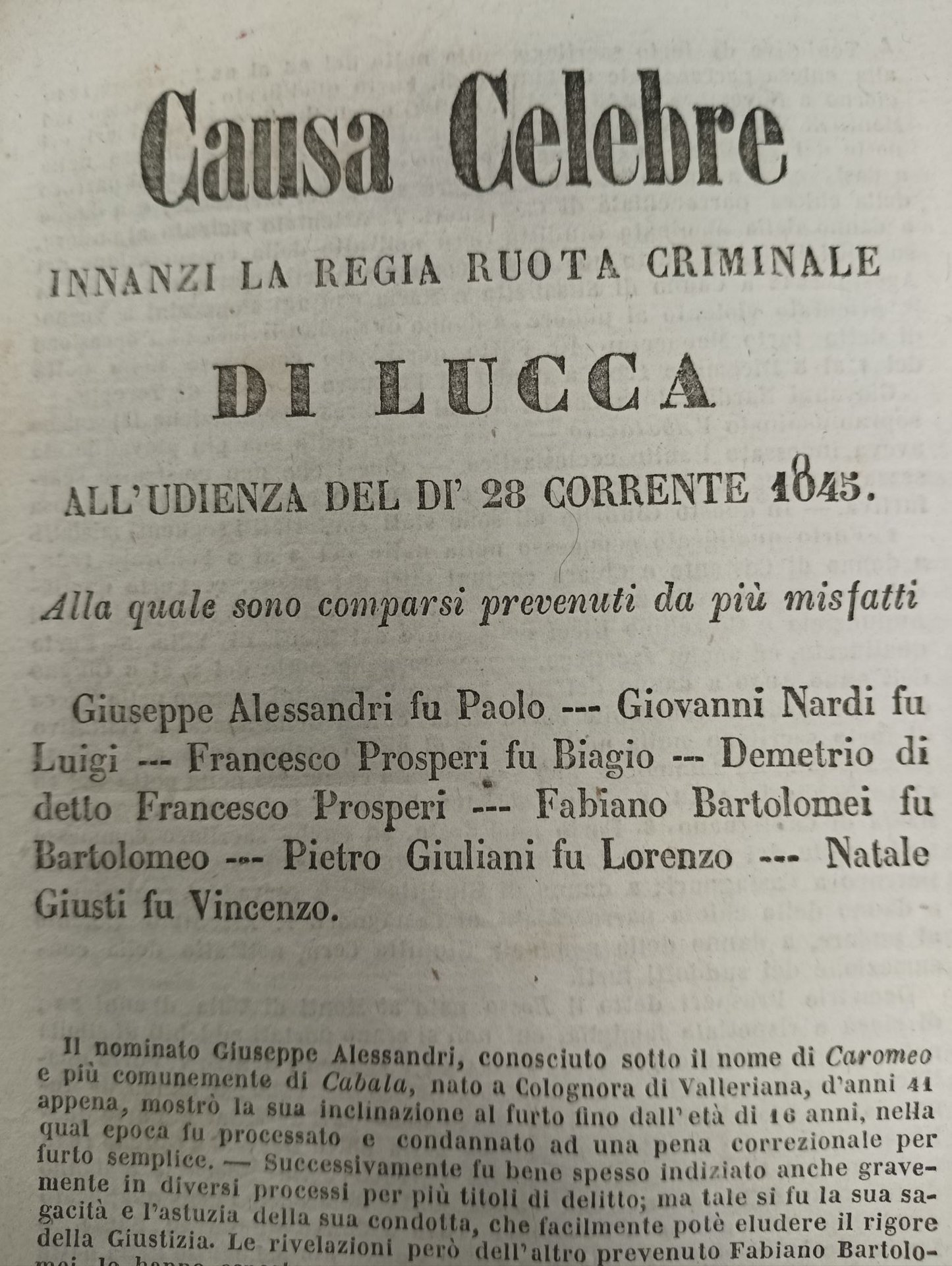 Innanzi la regia ruota criminale di Lucca all'udienza del dì 28 corrente 1845...